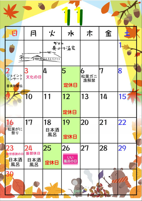 澄みきった青空の下で、時と共に移り変わる矢田川沿いの自然の景観を満喫し、身体も心もおくつろぎ下さい。